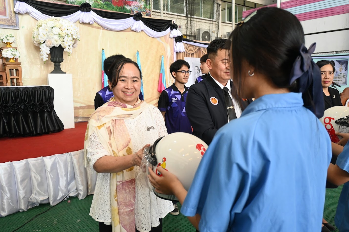 วันพุธที่ 24 ธันวาคม 2568 นางสาวระวีวรรณ วุฒิยศ ผู้อำนวยการวิทยาลัยอาชีวศึกษาเชียงใหม่ พร้อมด้วยคระผู้บริหาร เจ้าหน้าที่ตำรวจ สถานีตำรวจภูธรเมืองเชียงใหม่ คณะครู และนักเรียน นักศึกษา ดำเนินกิจกรรมตามโครงการรณรงค์ขับขี่ปลอดภัย สวมหมวกนิรภัย 100 เปอร์เซ็น ณ ลานโดมอเนกประสงค์ วิทยาลัยอาชีวศึกษาเชียงใหม่ วัตถุประสงค์ของโครงการนี้ เพื่อสร้างความรู้ ความตระหนัก และปลูกจิตสำนึก ให้แก่นักเรียน นักศึกษา ในเรื่องของกฎหมายจราจร รู้จักรักษาวินัยในการขับขี่ การรู้จักป้องกันตนเองในขณะขับขี่ยานพาหนะ