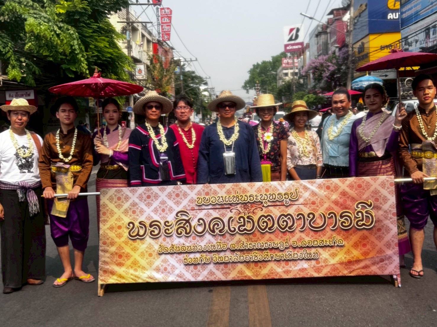 วันจันทร์ที่ 13 เมษายน พ.ศ. 2569 นางสาวระวีวรรณ วุฒิยศ ผู้อำนวยการวิทยาลัยอาชีวศึกษาเชียงใหม่ มอบหมายให้ผู้บริหาร คณะครู พร้อมด้วยนักเรียน นักศึกษา วิทยาลัยอาชีวศึกษาเชียงใหม่ ร่วมกับวัดสันต้นม่วงเหนือ ตำบลสำราญราษฎร์ อำเภอดอยสะเก็ด จังหวัดเชียงใหม่ ร่วมขบวนแห่พระพุทธรูปพระสิงคเมตตาบารมี ในขบวนสรงน้ำพระพุทธสิหิงค์ และพระพุทธรูปสำคัญของจังหวัดเชียงใหม่ ในงานป๋าเวณีปี๋ใหม่เมืองเจียงใหม่ ประจำปี 2569