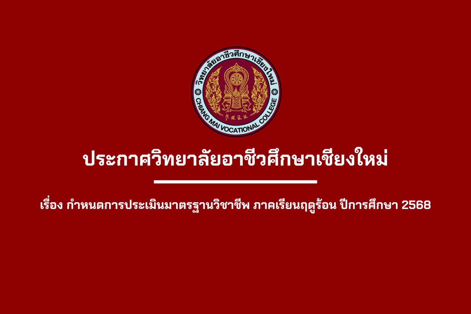 ประกาศกำหนดการประเมินมาตรฐานวิชาชีพ ภาคเรียนฤดูร้อน ปีการศึกษา 2568