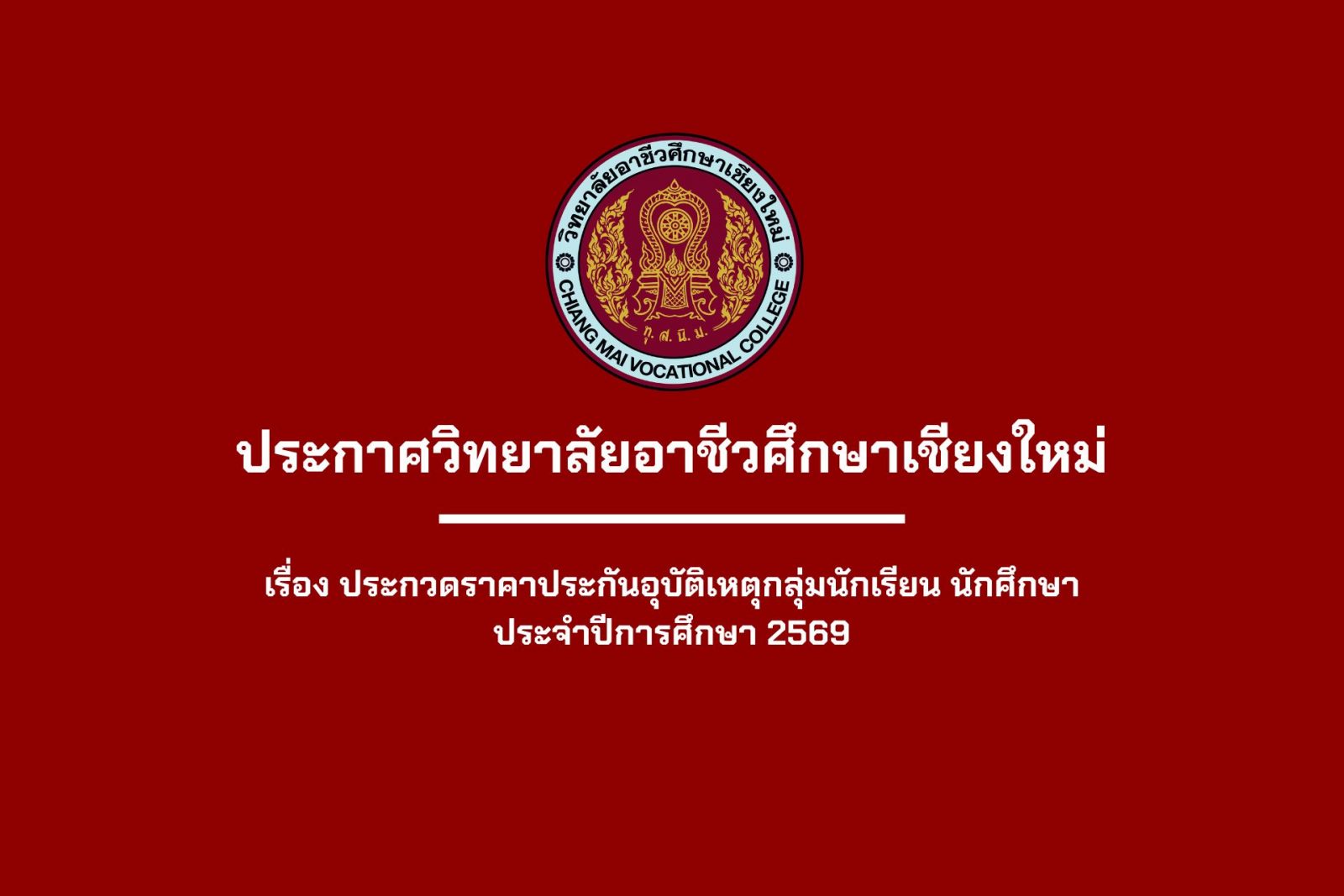 ประกาศประกวดราคาประกันอุบัติเหตุกลุ่มนักเรียน นักศึกษา ประจำปีการศึกษา 2569